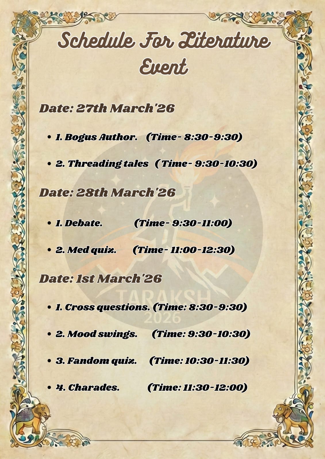 Detailed schedule for Tarakash 2.0 will be released shortly.